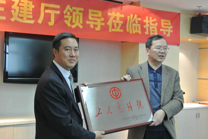 12月4日,福建省住房和城鄉(xiāng)建設(shè)廳機(jī)關(guān)黨委周華南專職副書記一行三人蒞臨公司檢查指導(dǎo)工會工作。在工作匯報(bào)會上,周華南專職副書記三人仔細(xì)聆聽了工會工作匯報(bào),對公司工會工作給予了高度評價,并提出了許多寶貴意見。最后,周華南副書記向副董事長孫碧慶頒發(fā)了2012年全國交通建設(shè)系統(tǒng)“工人先鋒號”獎牌、獎狀和獲獎文件。